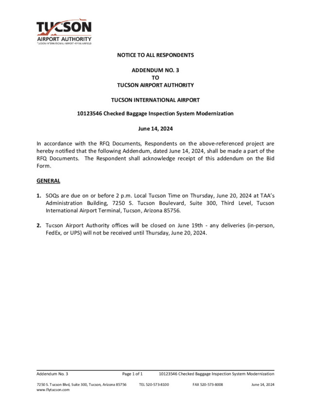 10123546 Checked Baggage Inspection System Modernization – Addendum # 3